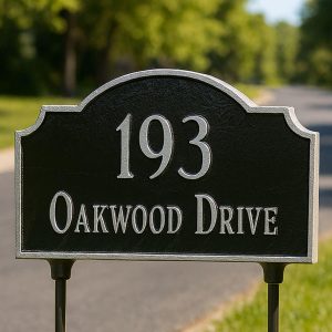 Double Sided Lawn Vanderbilt Two Line Address Sign Plaque with Stakes
