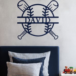 Custom Steel Kids Baseball One-Line Name Wall Sign (5 Sizes & 16 Colors)