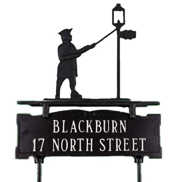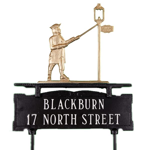 15.25″ x 14.75″ Cast Aluminum Two Line Lawn Sign with Lamplighter Ornament