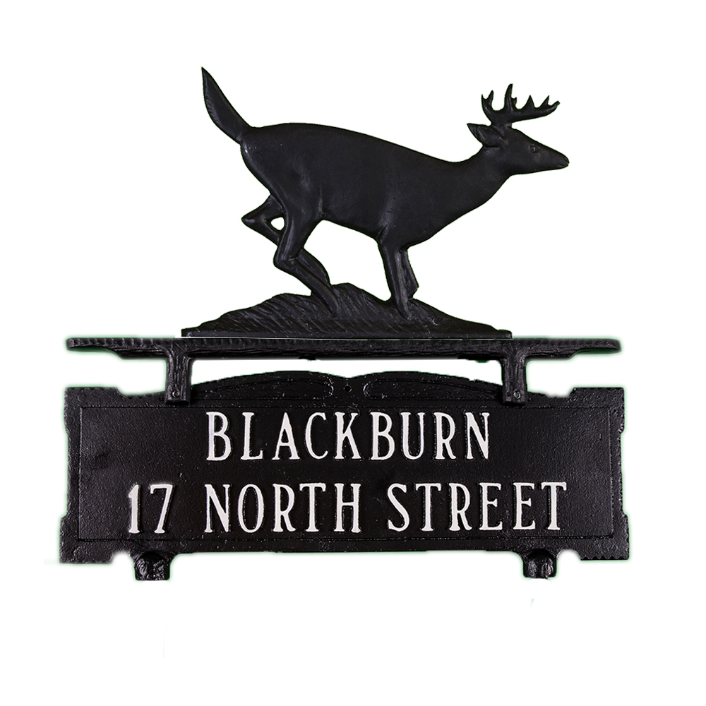 Cast Aluminum Two Line Mailbox Sign with Buck Ornament