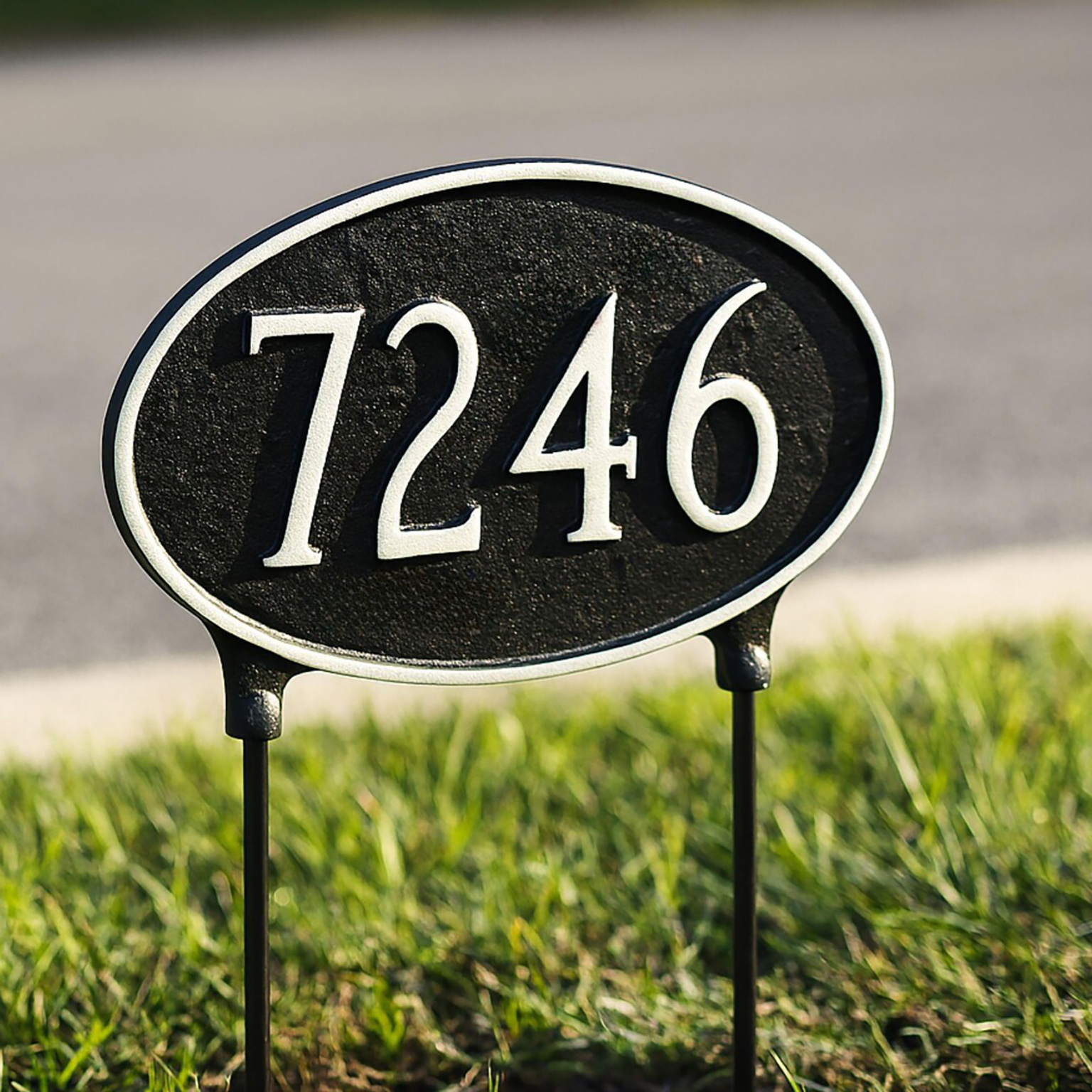 Double Sided Lawn Classic Oval Standard One Line Address Sign Plaque With Stakes