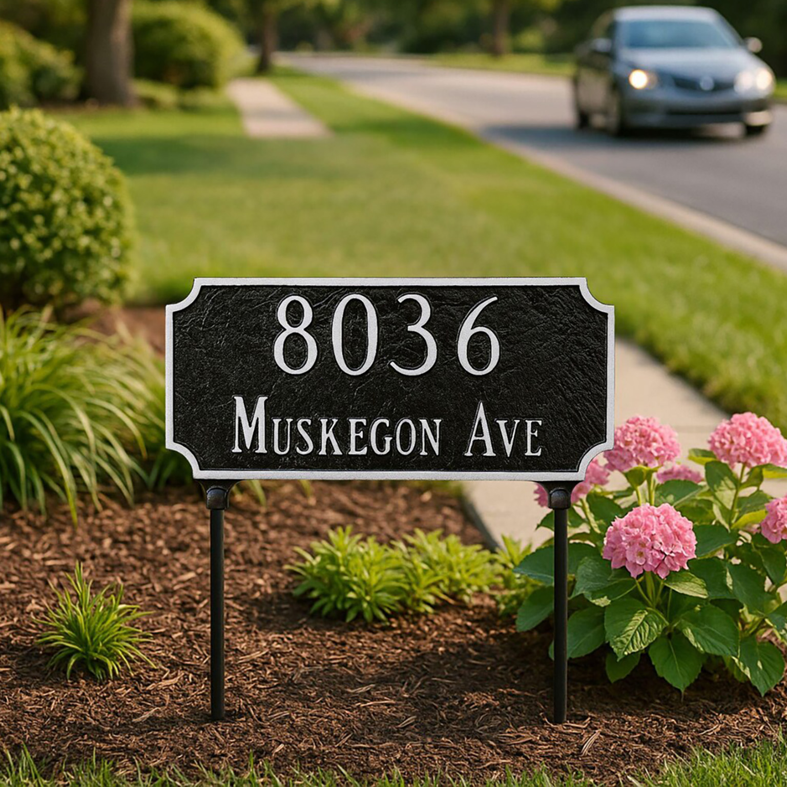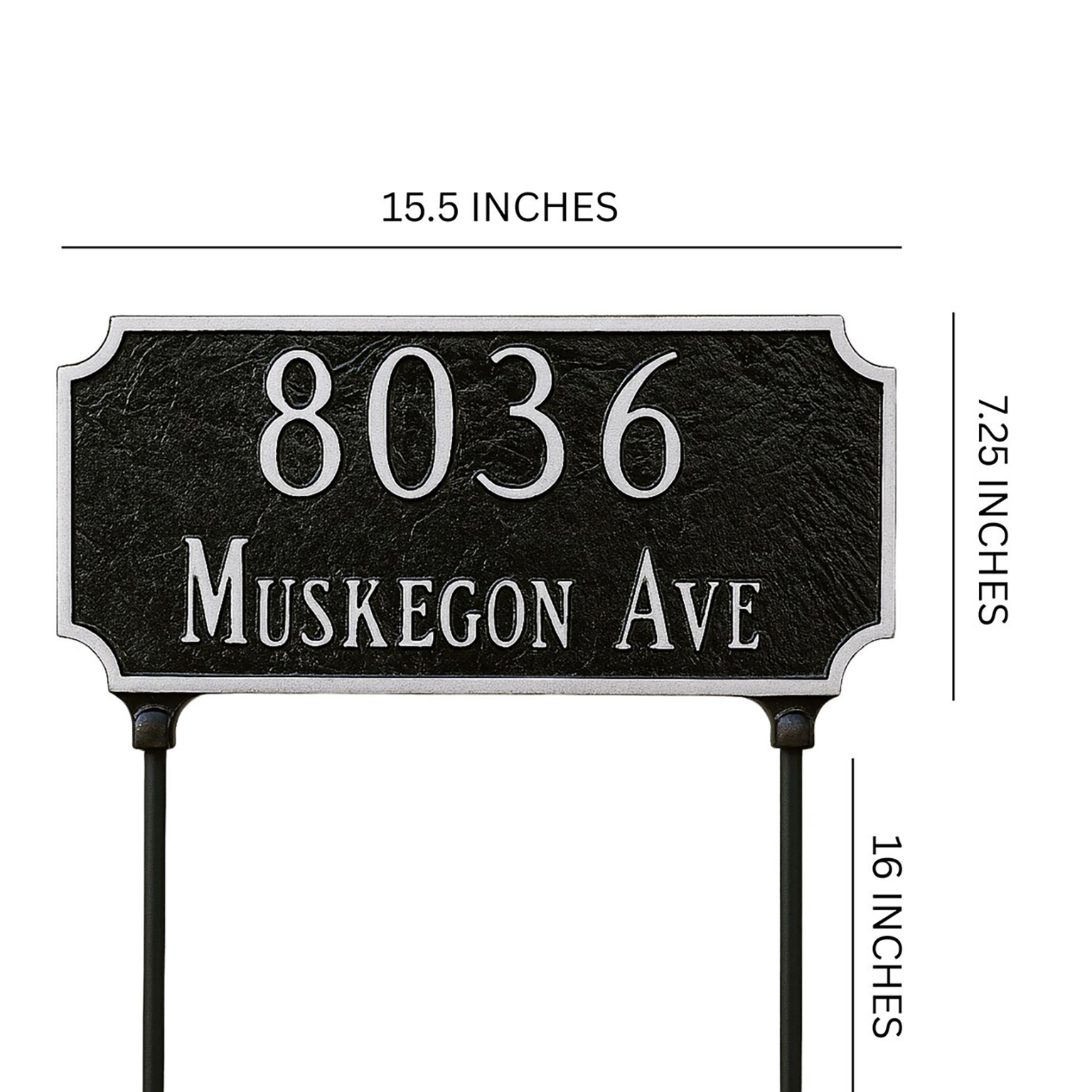 Double Sided Lawn Princeton Two Line Address Sign Plaque with Stakes