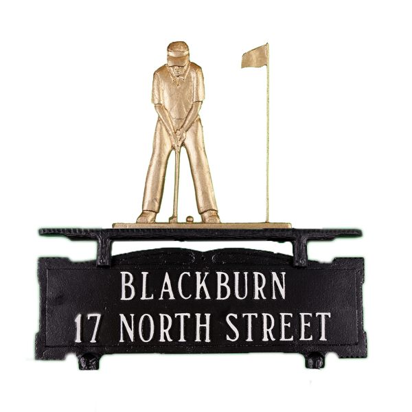 12.75″ x 14.75″ Cast Aluminum Two Line Mailbox Sign with Putter Ornament