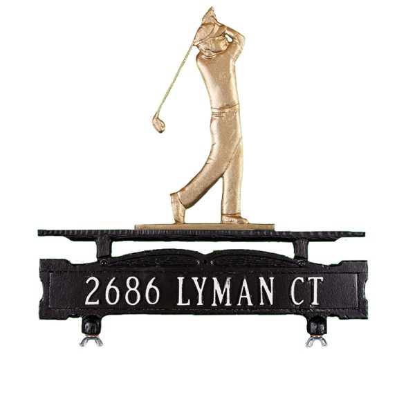 Cast Aluminum One Line Mailbox Sign with Golfer Ornament