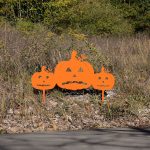 Add a personal touch to your fall landscape with our NEW Halloween three-pumpkin lawn signs, perfect for outdoor spaces. Whether displayed on your door, as part of your spooky display or along your fence, these custom crafted pumpkin signs make a statement. Our Halloween three-pumpkin lawn signs are constructed from 14-gauge steel and coated with a durable, UV-resistant powder finish. They are available in 8 color options. Bring out your fall spirit for friends, neighbors and trick-or-treaters with our new festive pumpkin name signs!