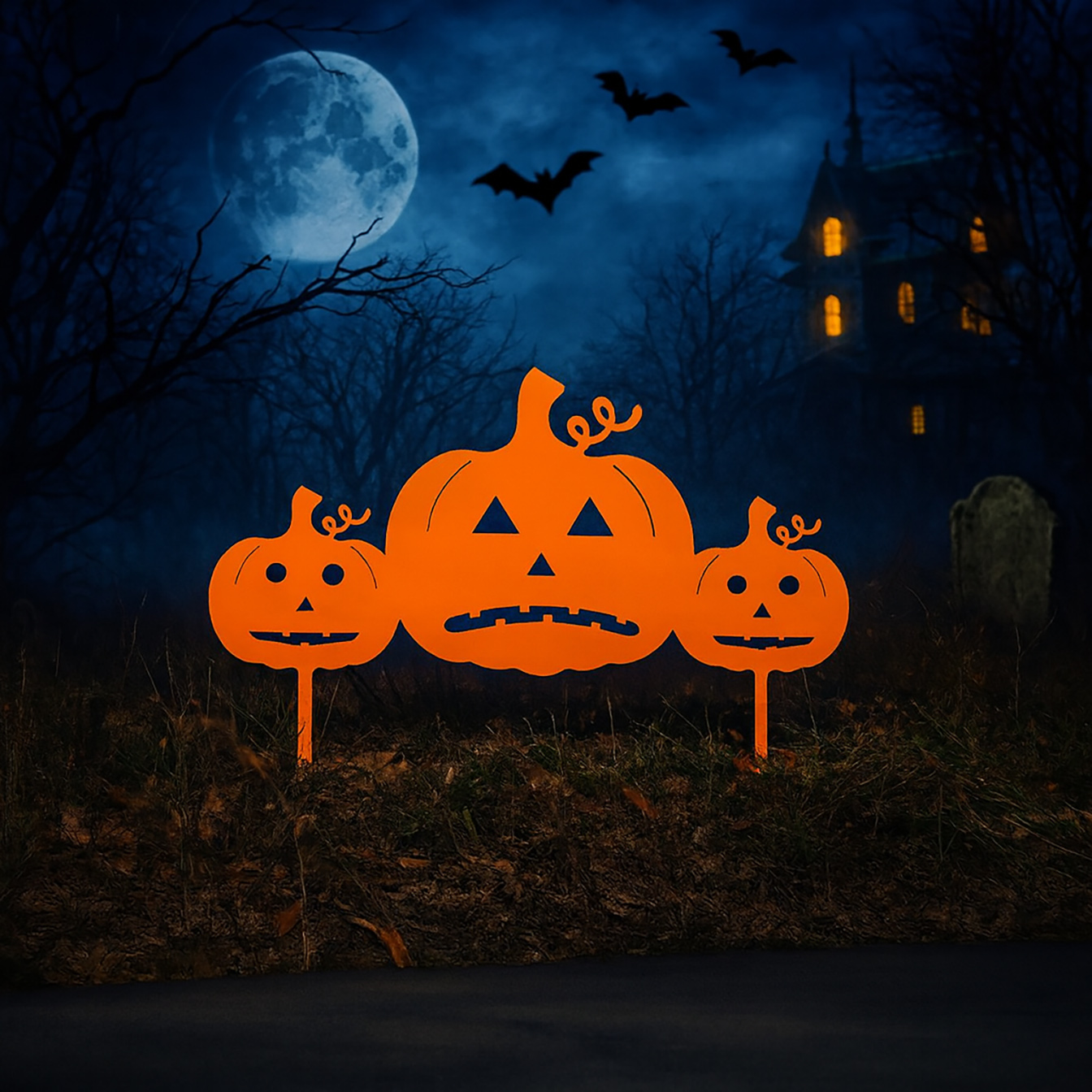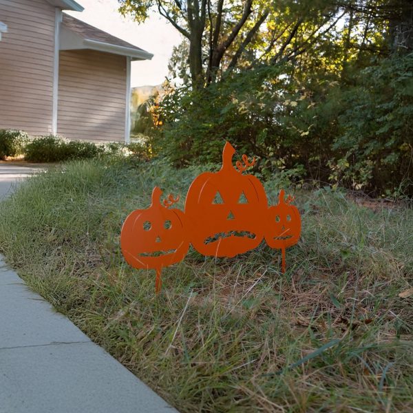 Steel Three Pumpkins Outdoor Lawn Decor with Stakes (8 Colors)