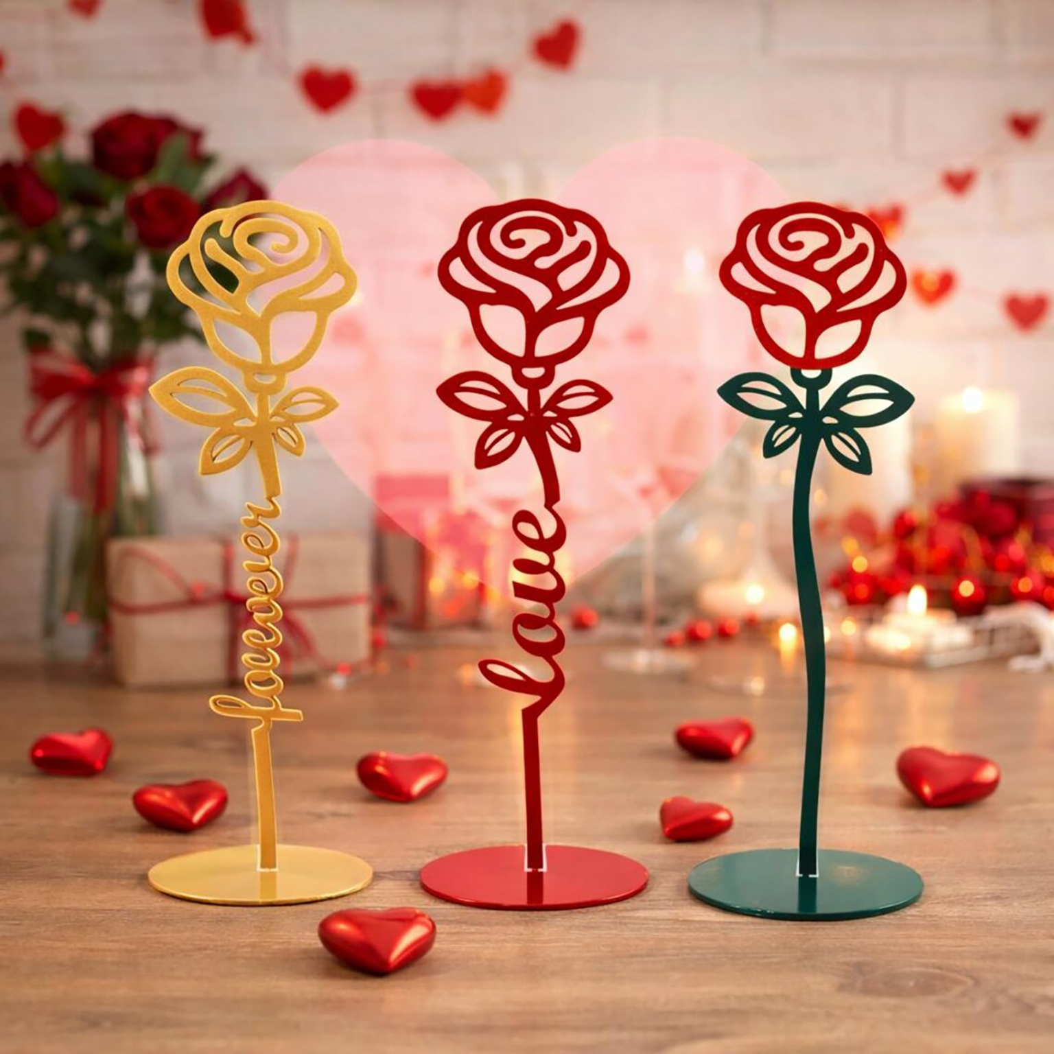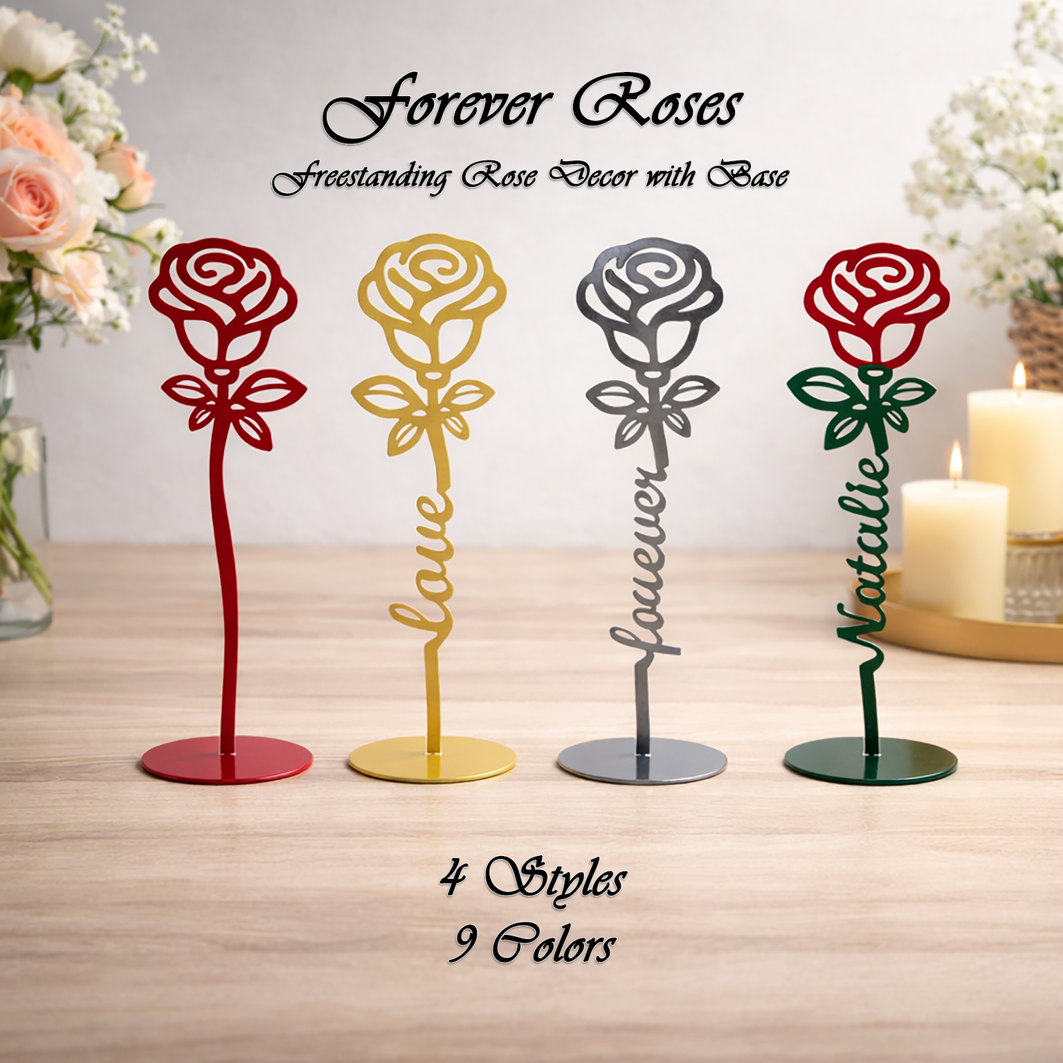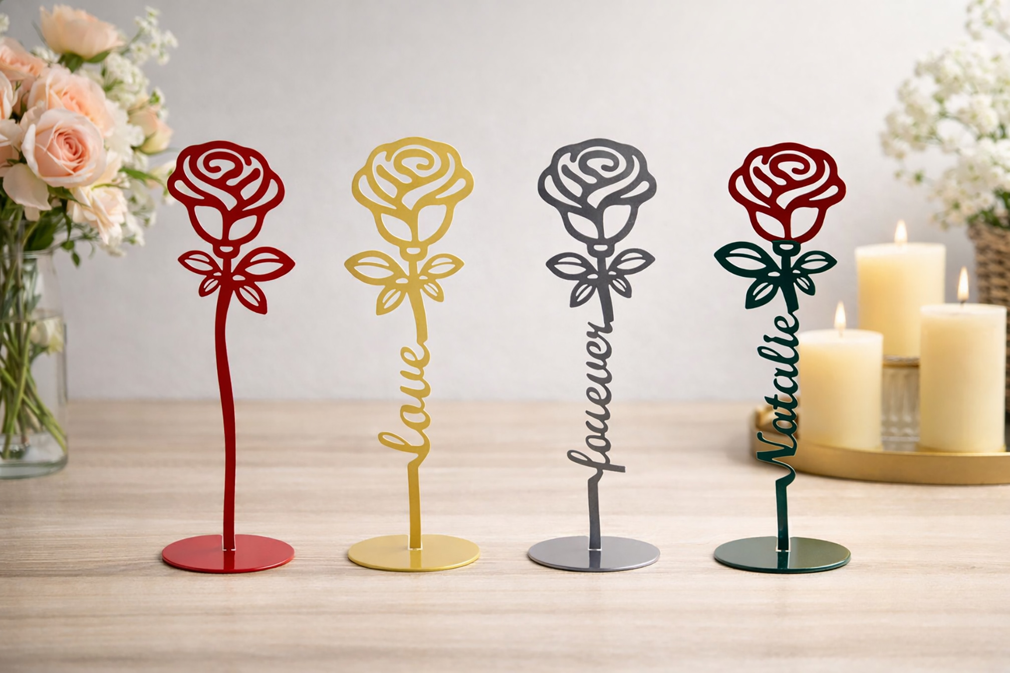 Custom Steel Forever Rose Freestanding Tabletop Decor (4 Styles & 9 Colors)