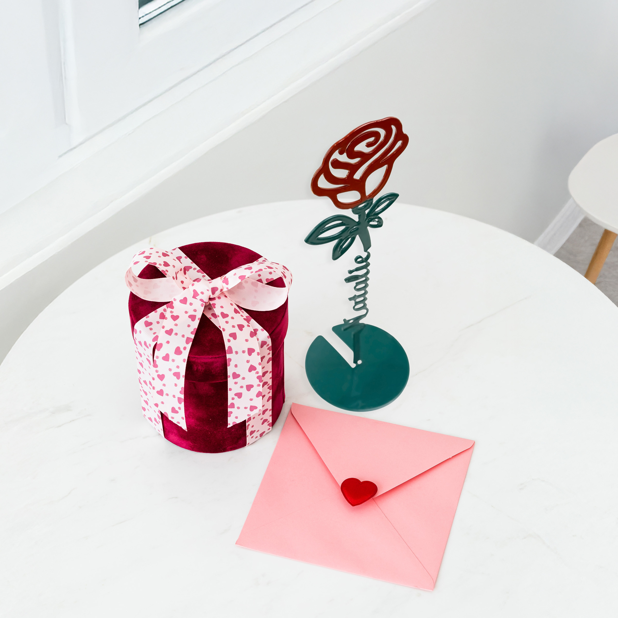 EASY TO INSTALL: Installing your forever rose tabletop sign is a breeze! Each comes with a flat base attached. The rose sign will arrive to you flat. Grab where the stem meets the circle base (gloves may be used) and gently bend your rose to stand straight up.