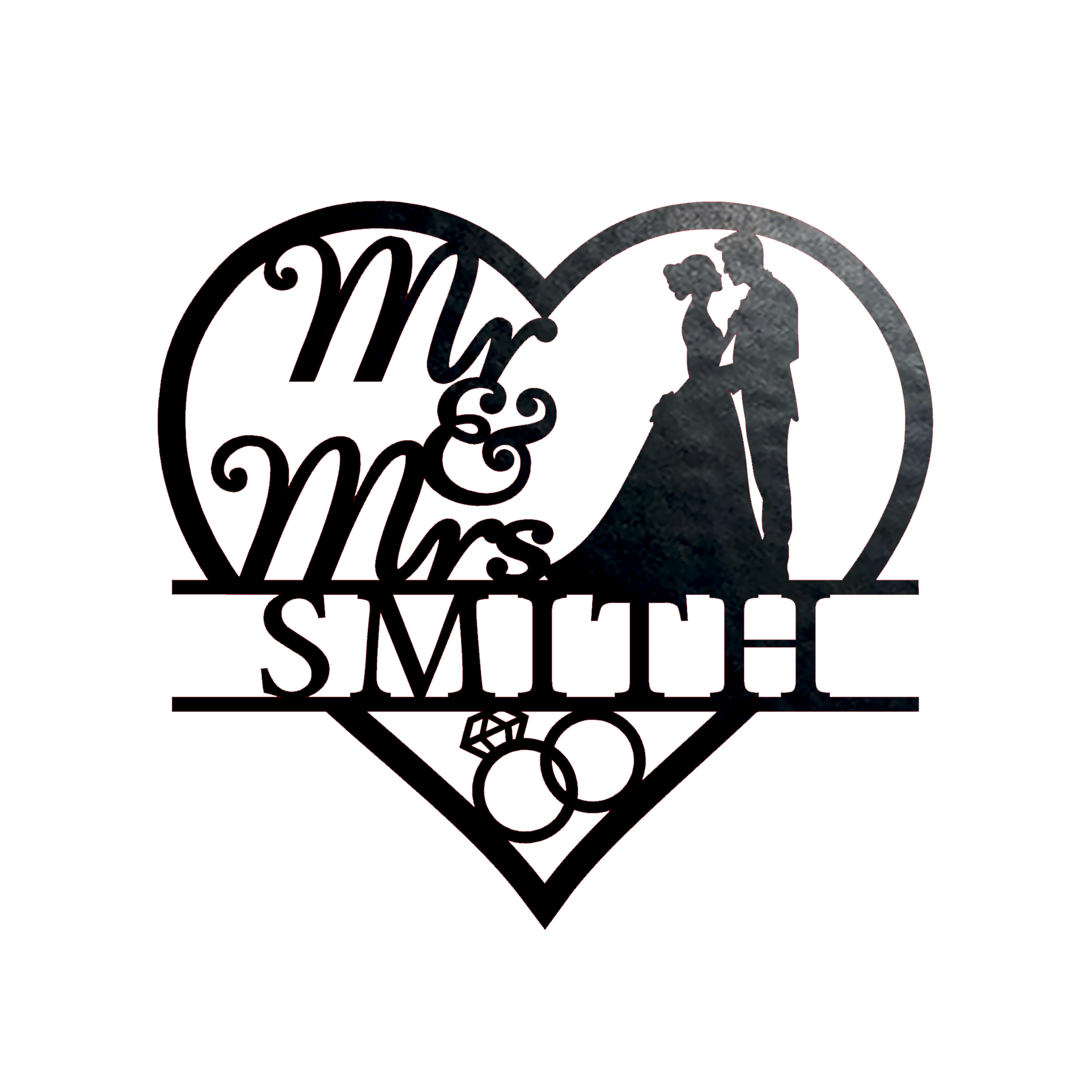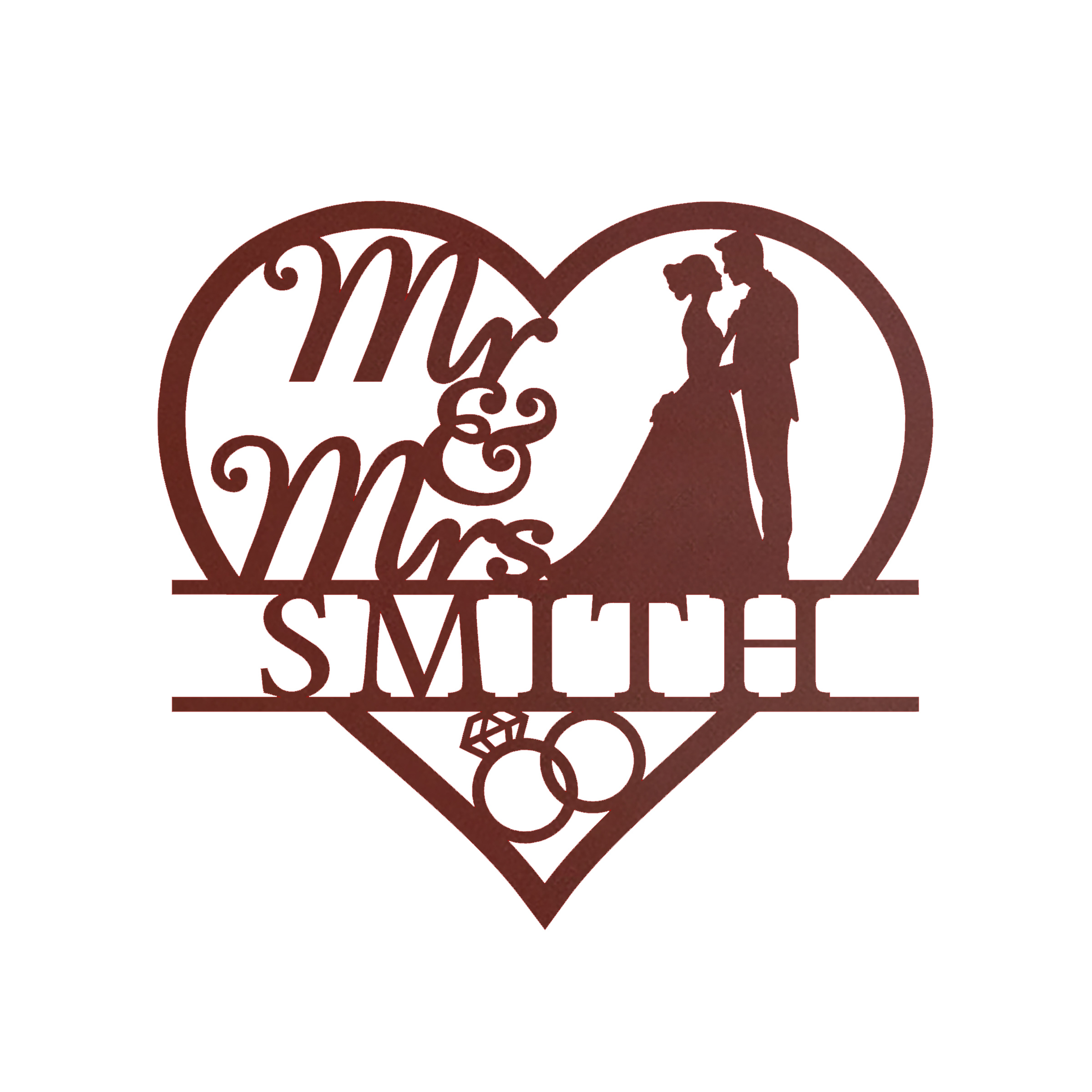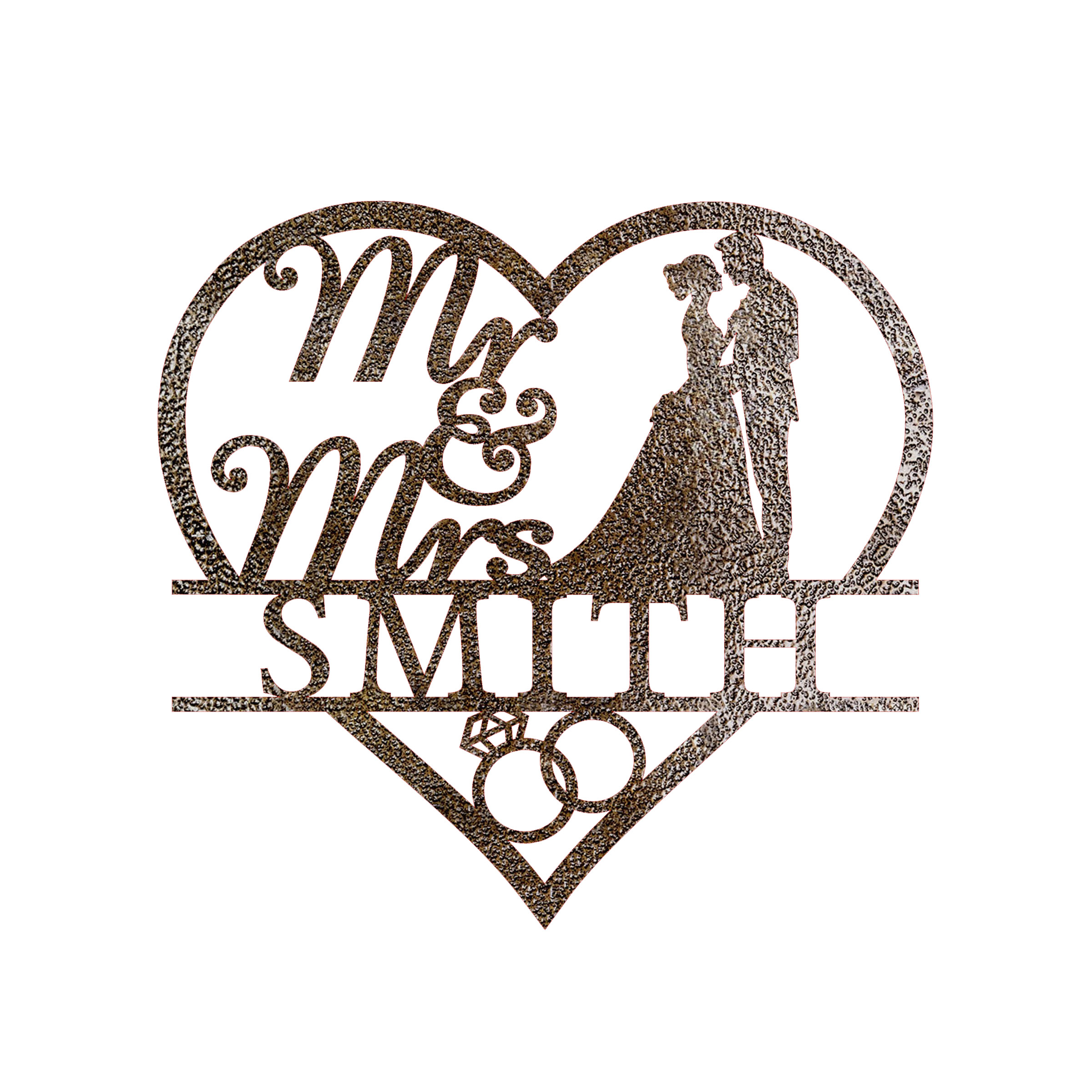 Custom Steel Heart Mr. & Mrs. Name Sign with Wedding Rings (5 Sizes & 15 Colors)