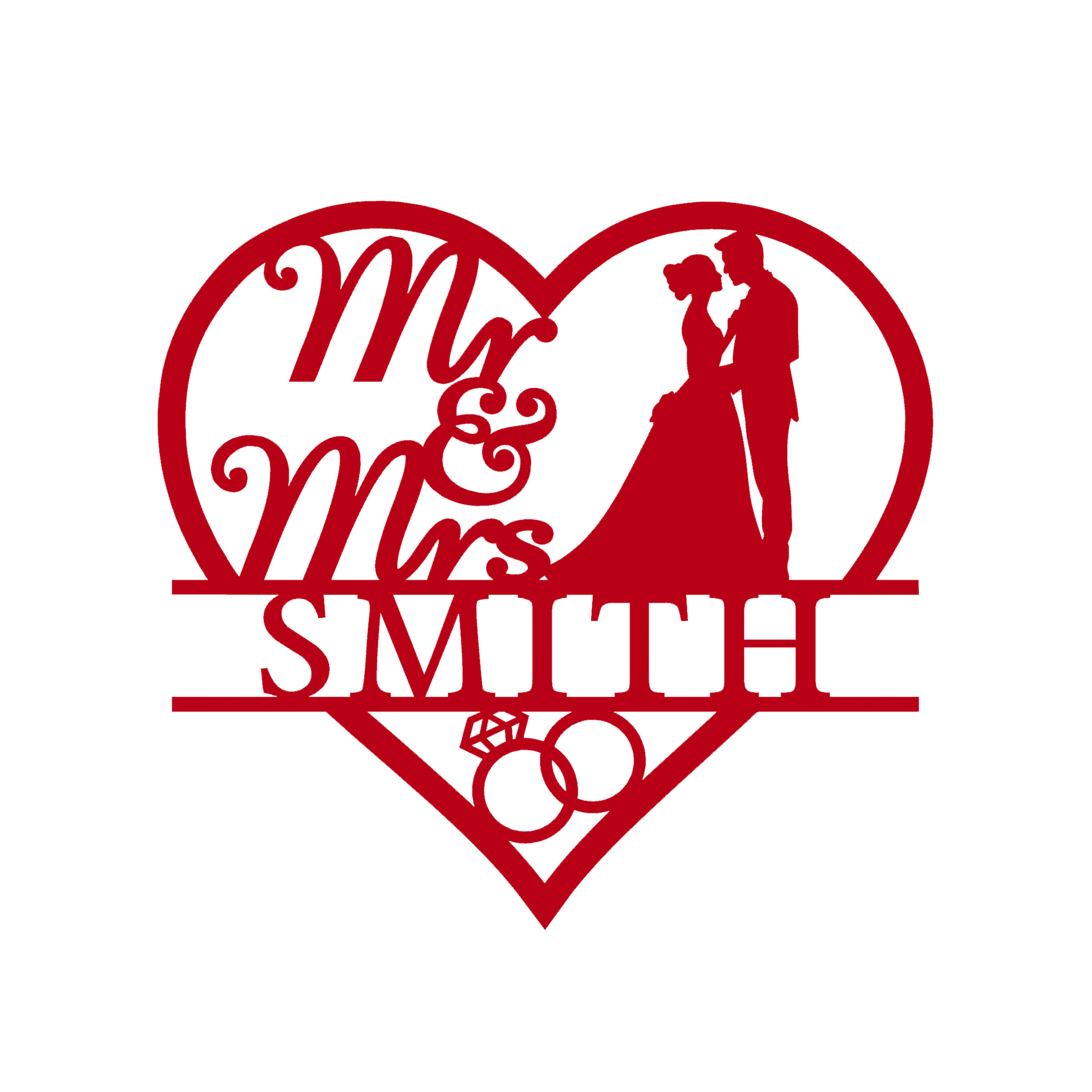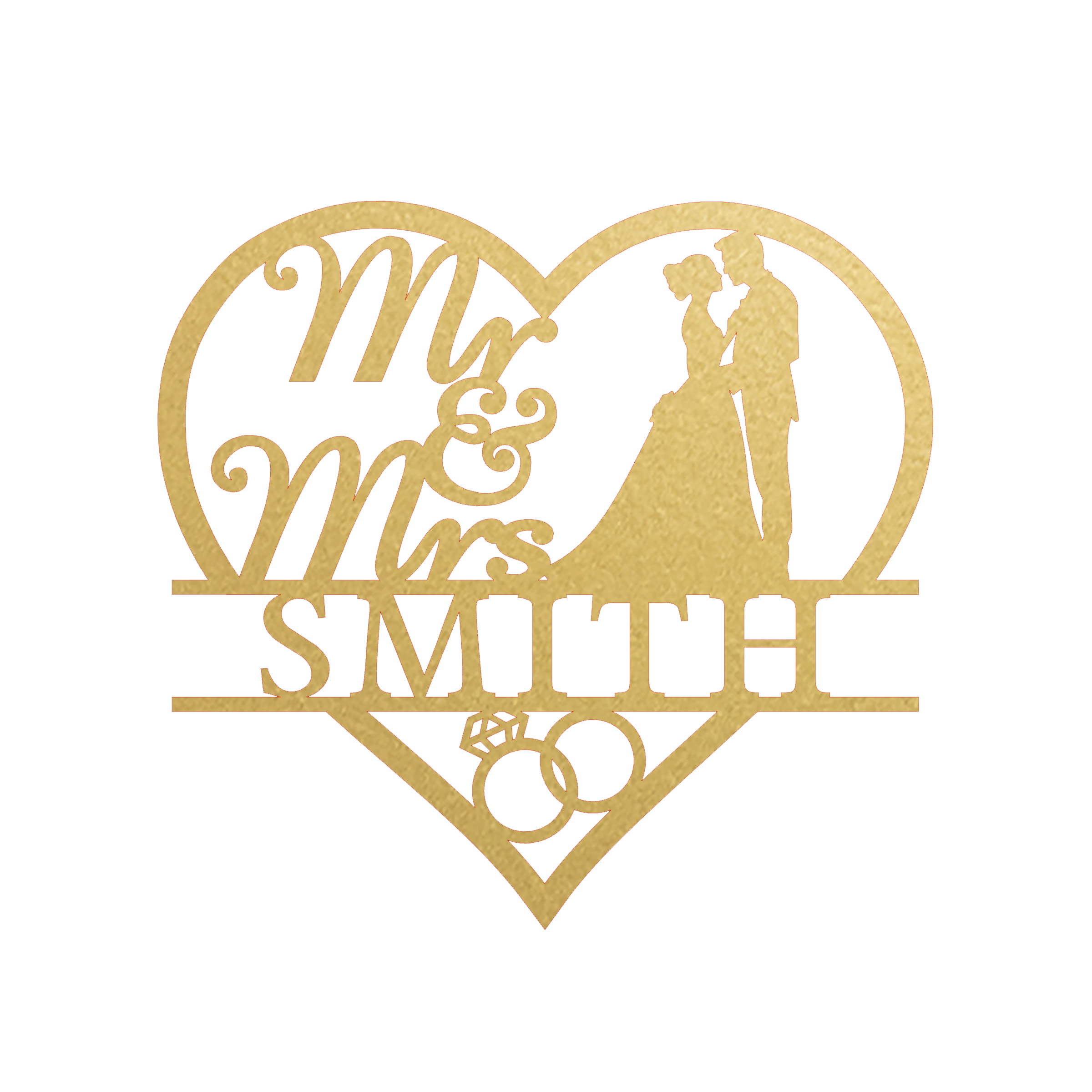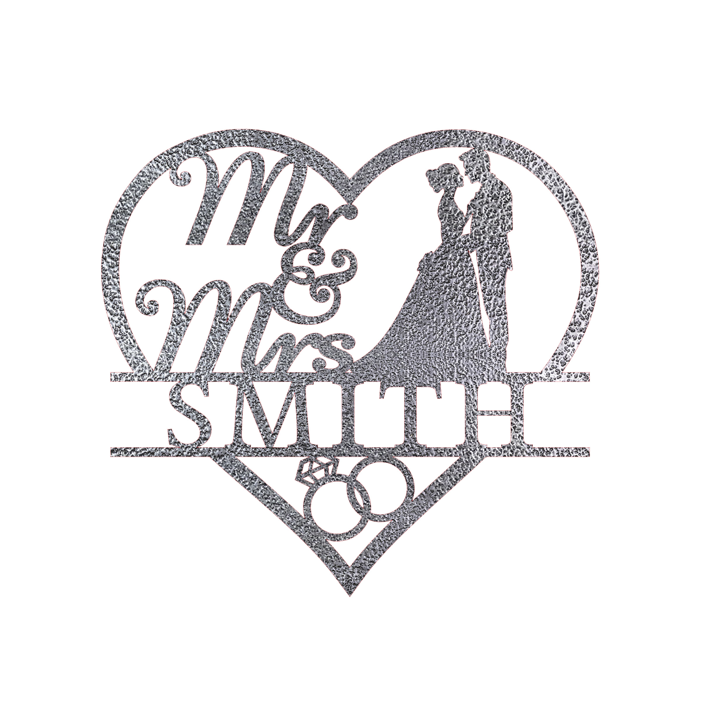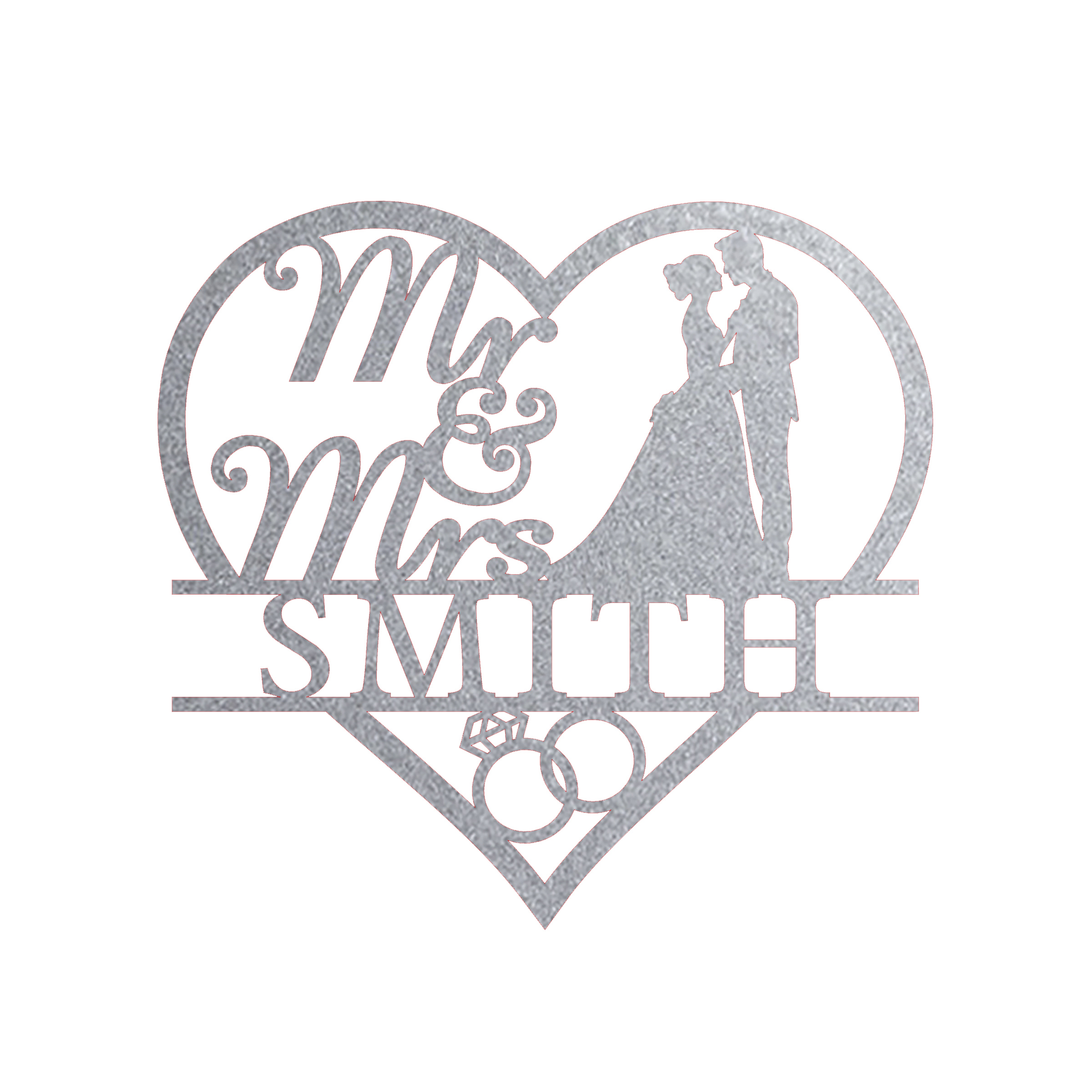 Custom Steel Heart Mr. & Mrs. Name Sign with Wedding Rings (5 Sizes & 15 Colors)