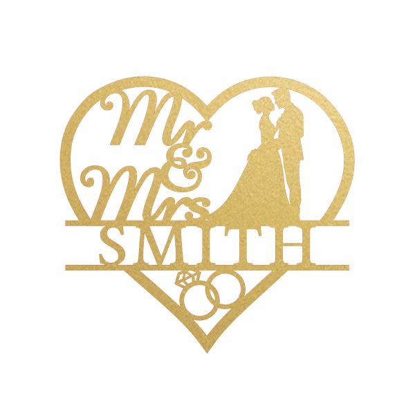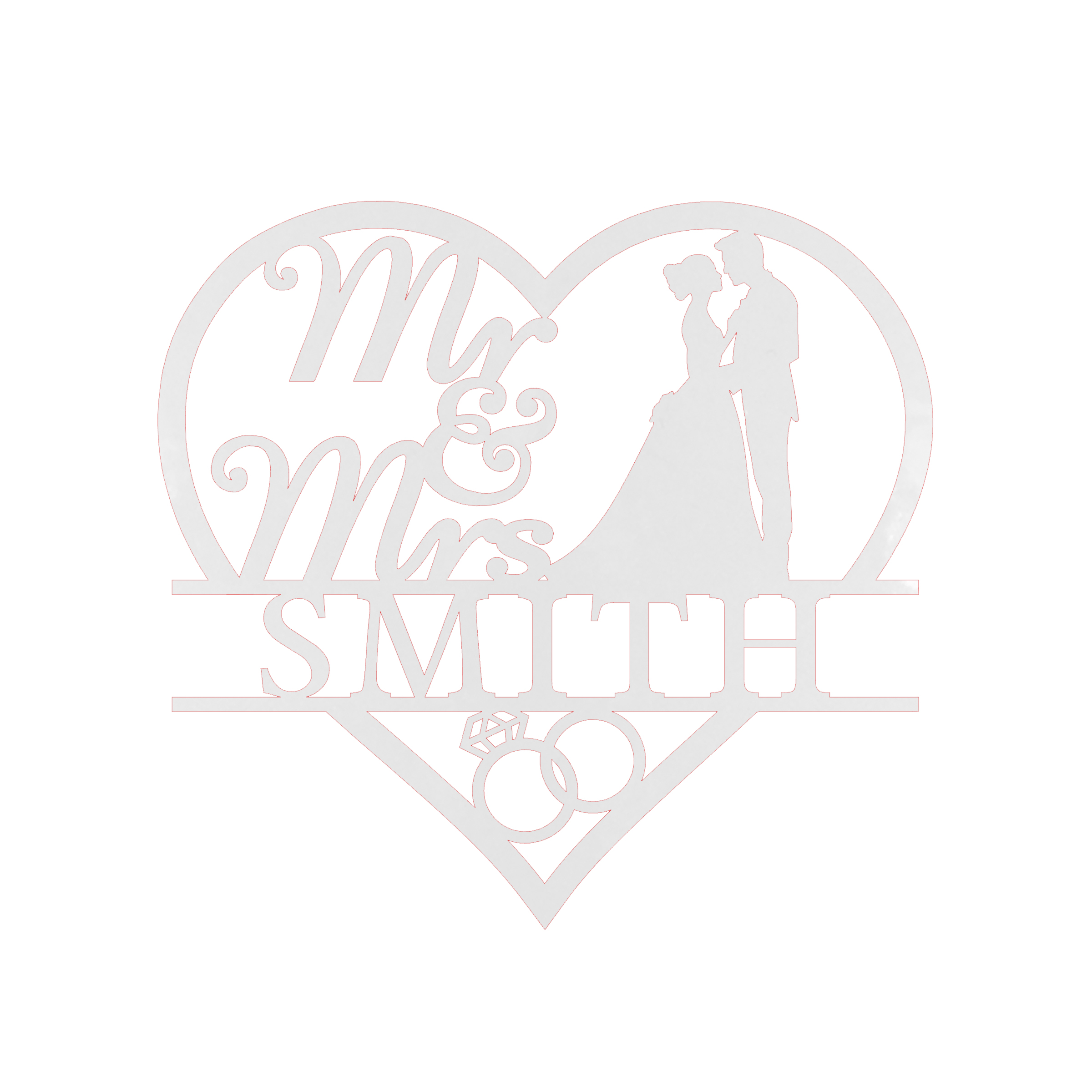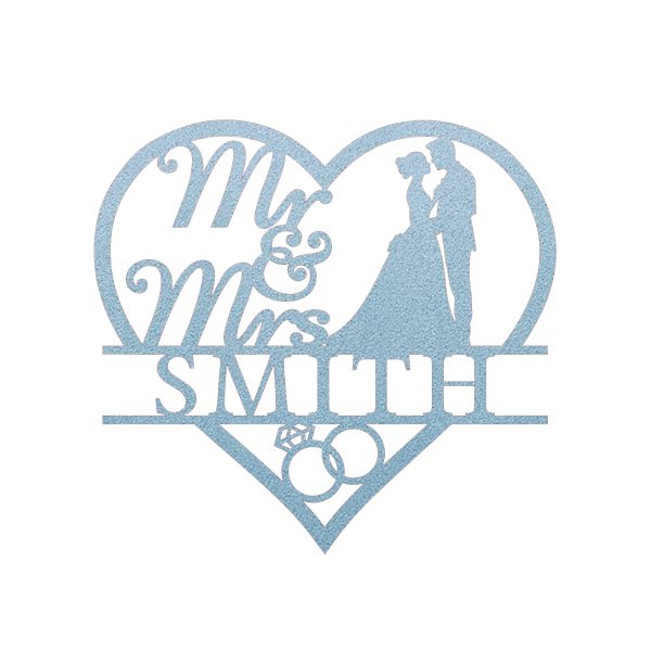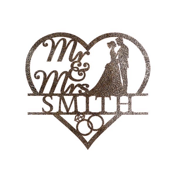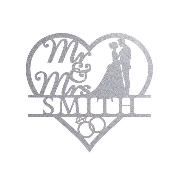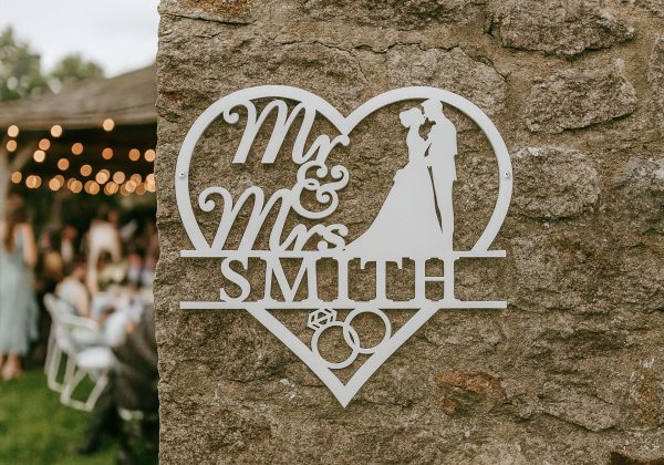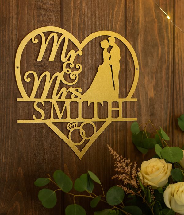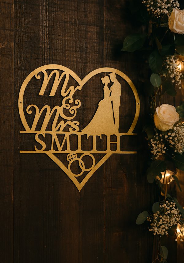 Add a personal touch to your home or wedding venue with our NEW customized steel heart Mr. & Mrs. wedding ring signs, perfect for both indoor and outdoor spaces. Whether displayed on your front porch, above your mantle, or hanging proudly on the wall, these custom crafted signs make a statement. They also serve as thoughtful and lasting gifts for friends and family of all ages. Each custom name plaque is laser cut with precision from thick 14-gauge steel and coated with a durable powder finish to ensure it withstands the test of time. Customize with your name or any unique custom text to create a piece that’s truly meaningful.