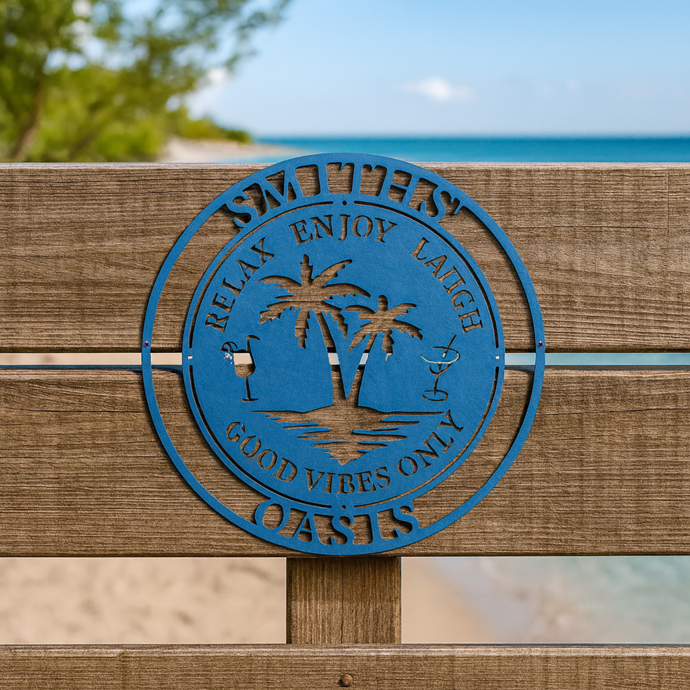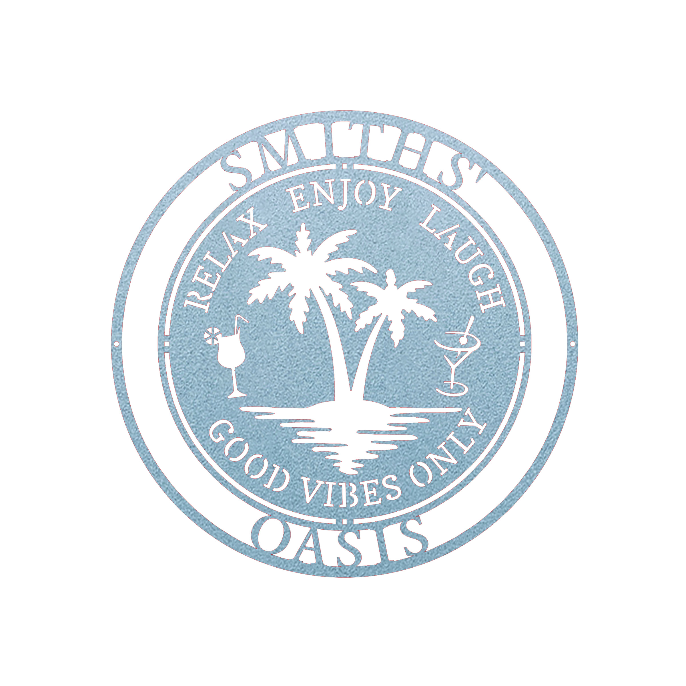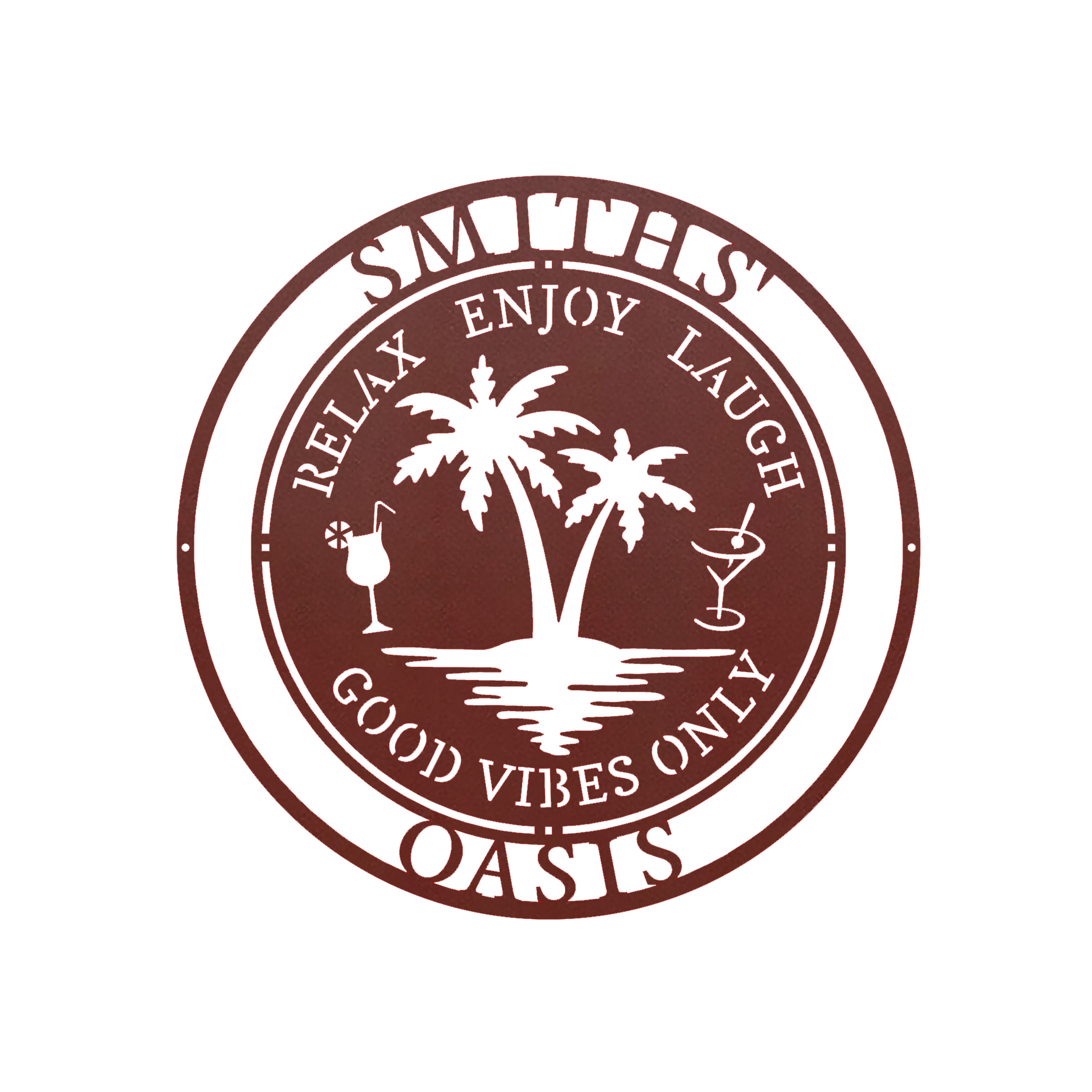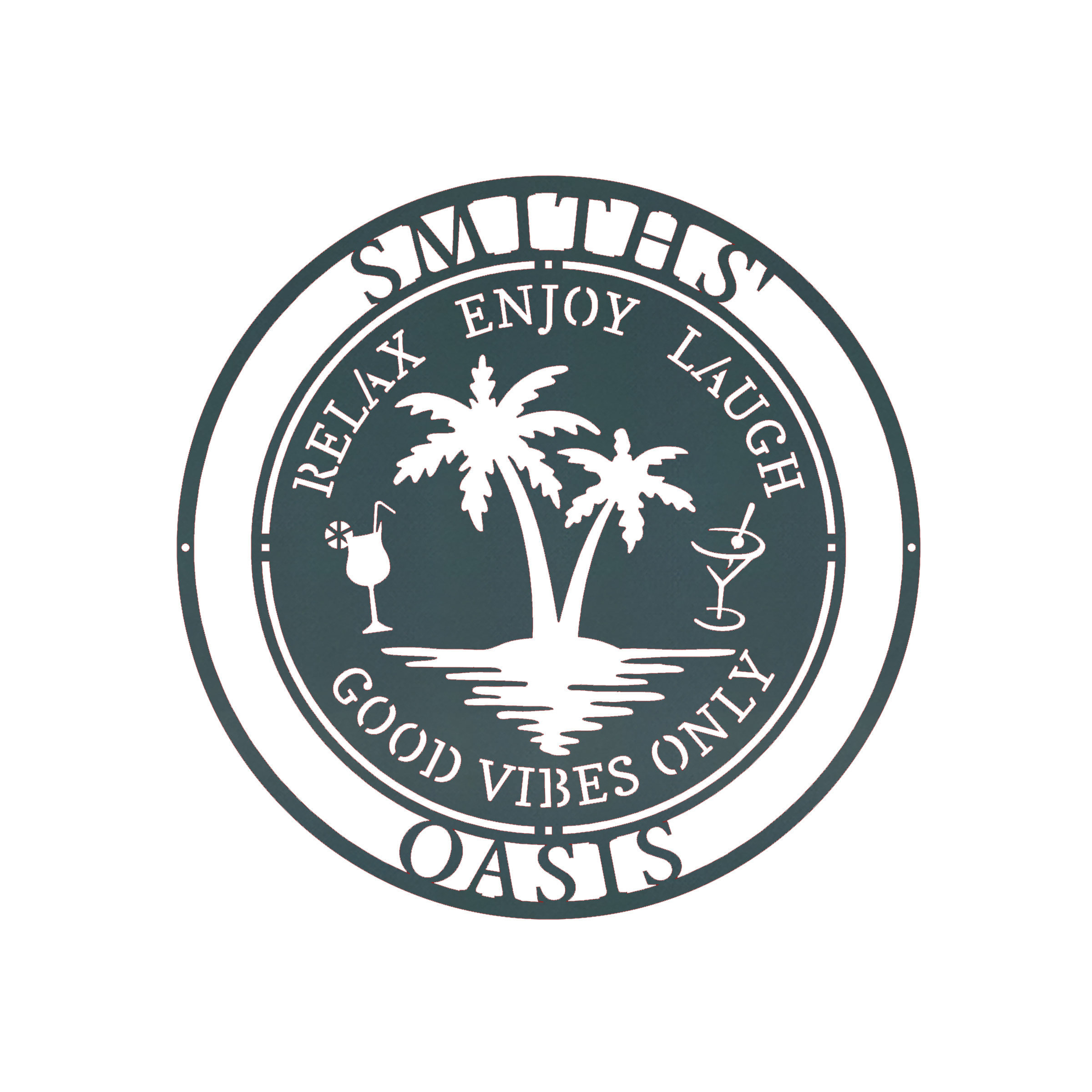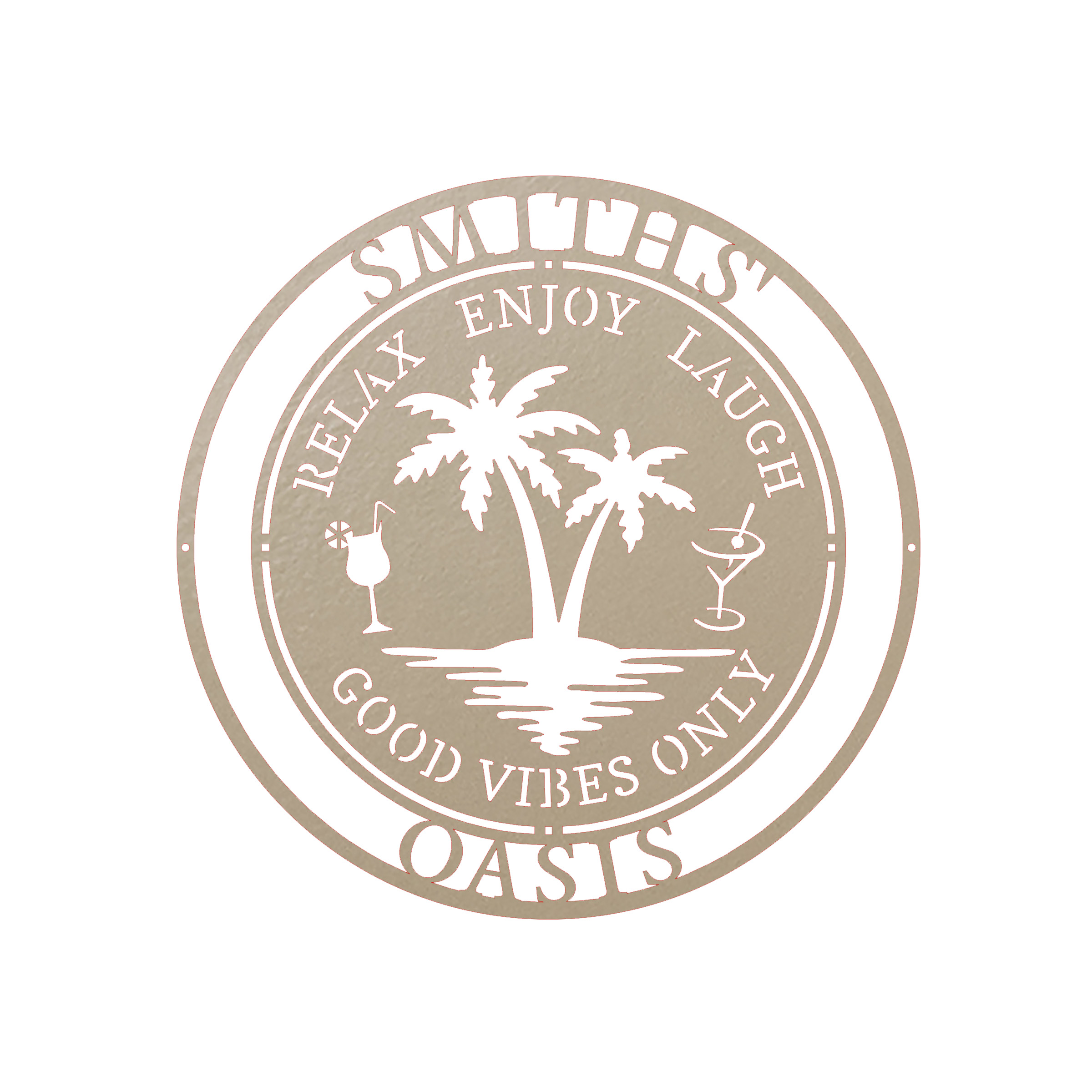 Custom Steel Circle Beach Oasis Family Name Sign (5 Sizes & 17 Colors)