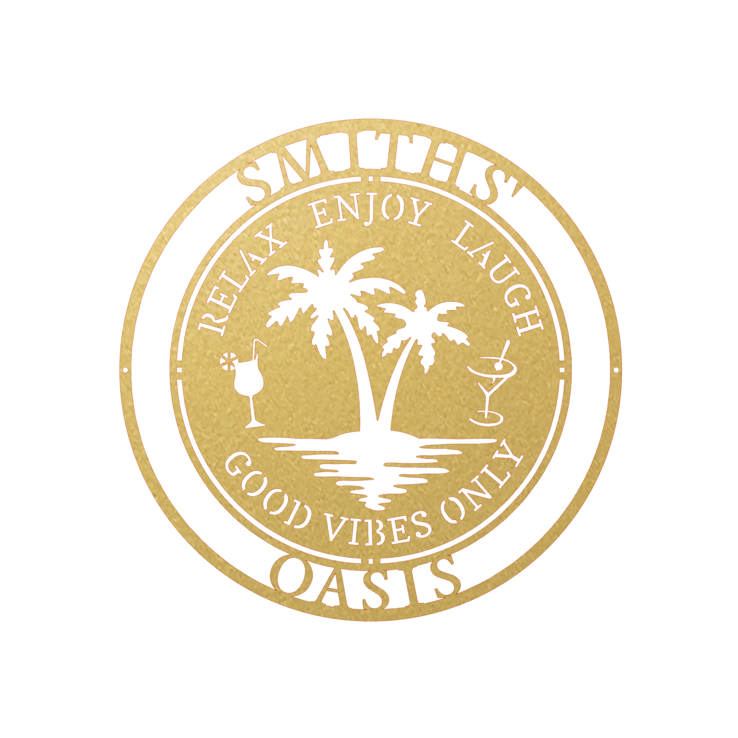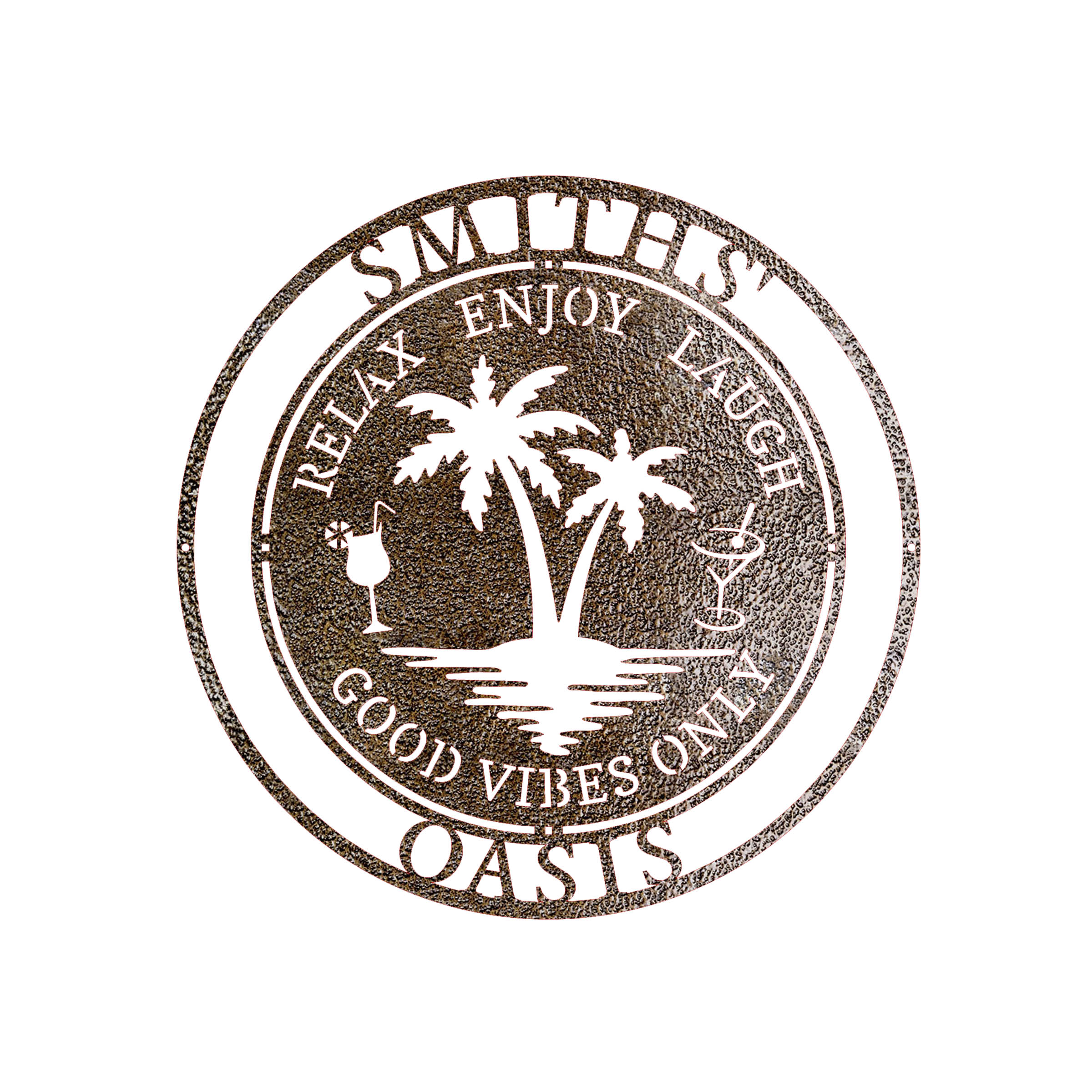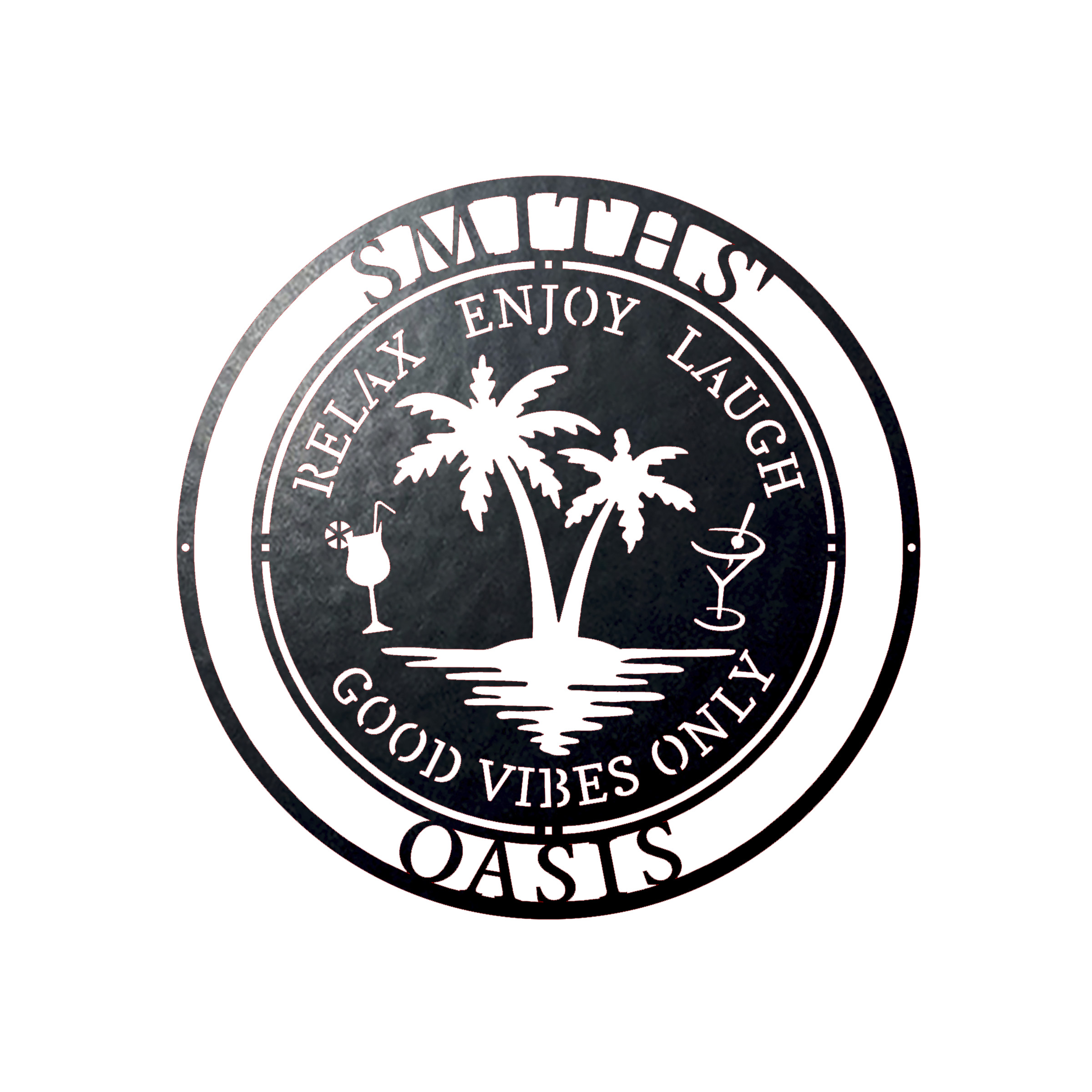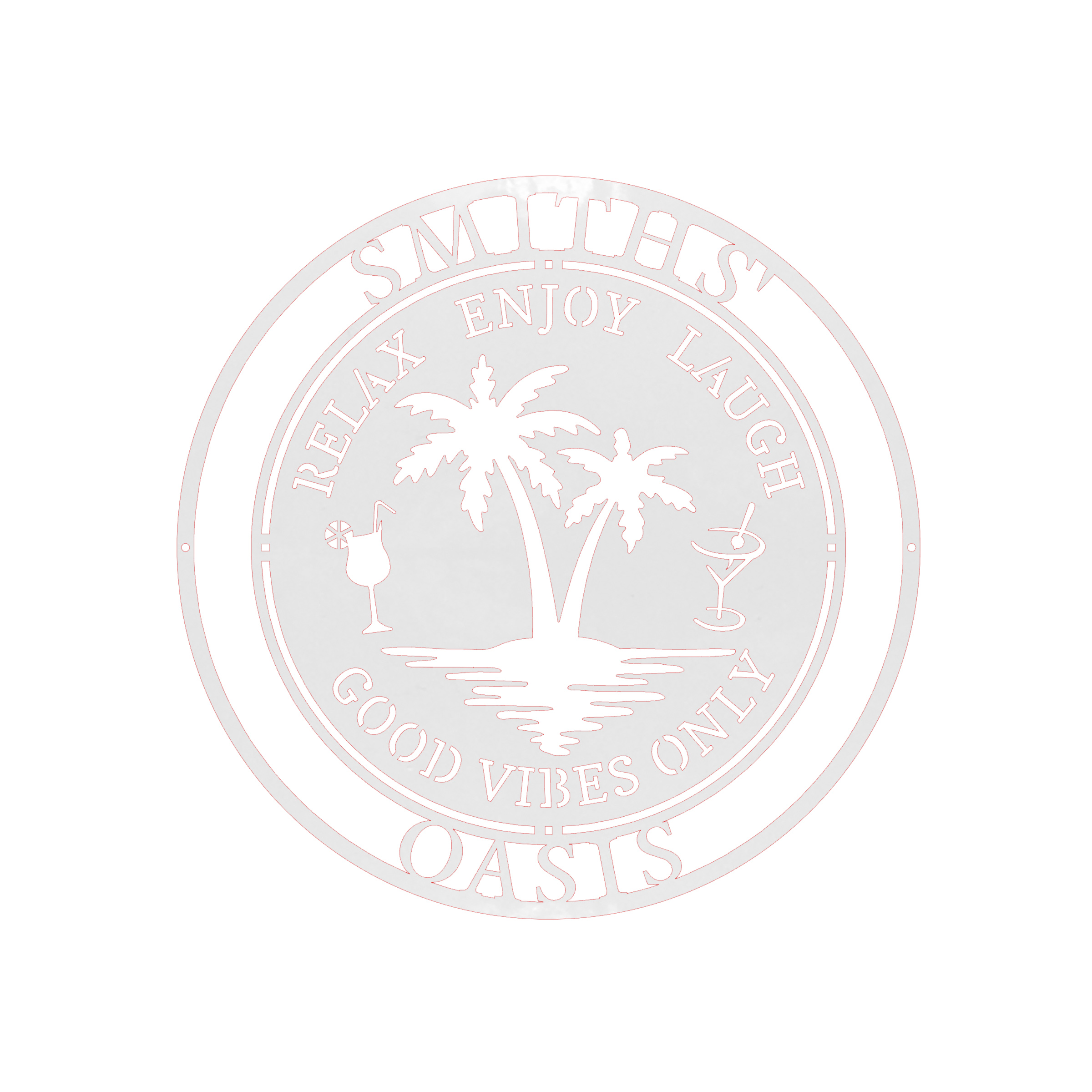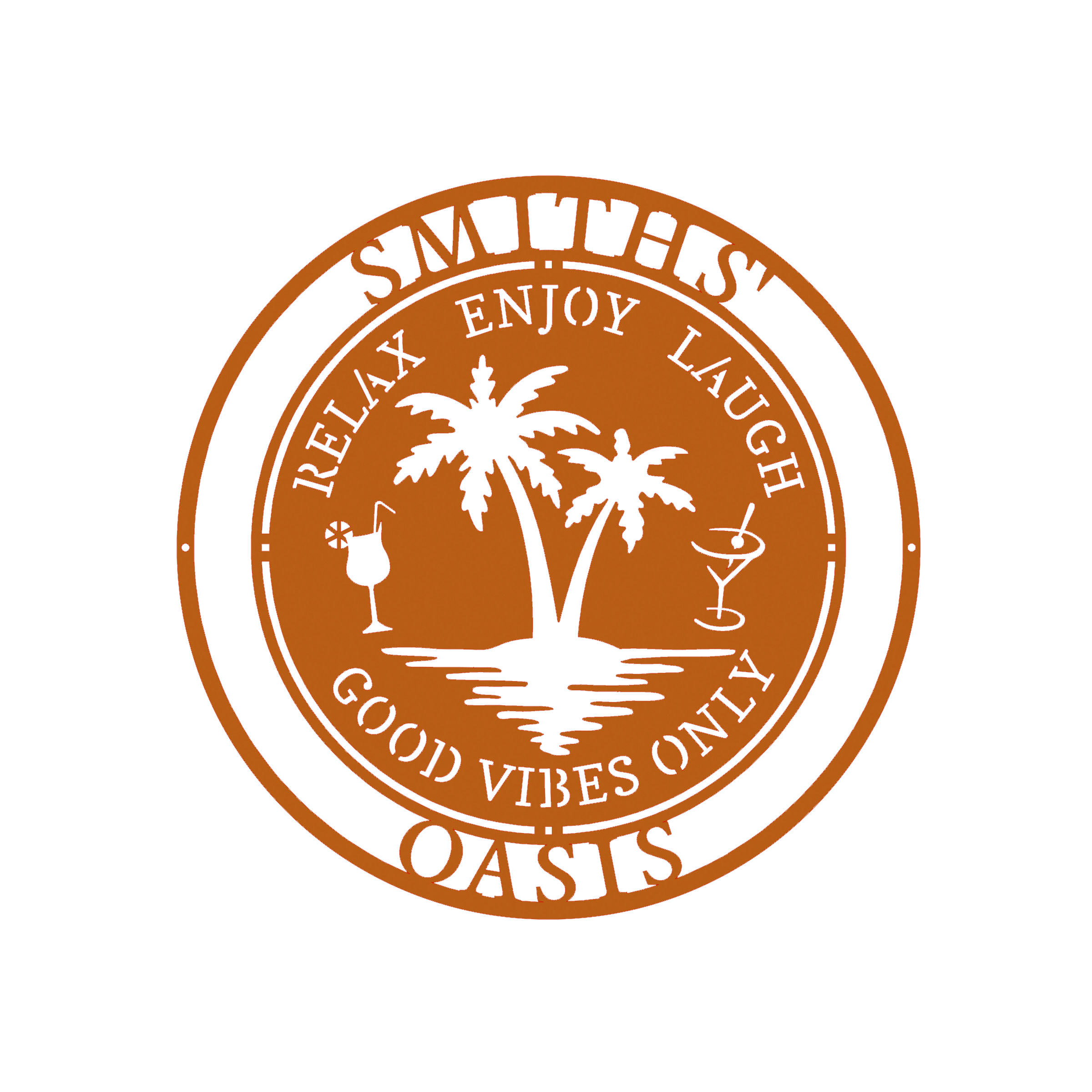 Custom Steel Circle Beach Oasis Family Name Sign (5 Sizes & 17 Colors)