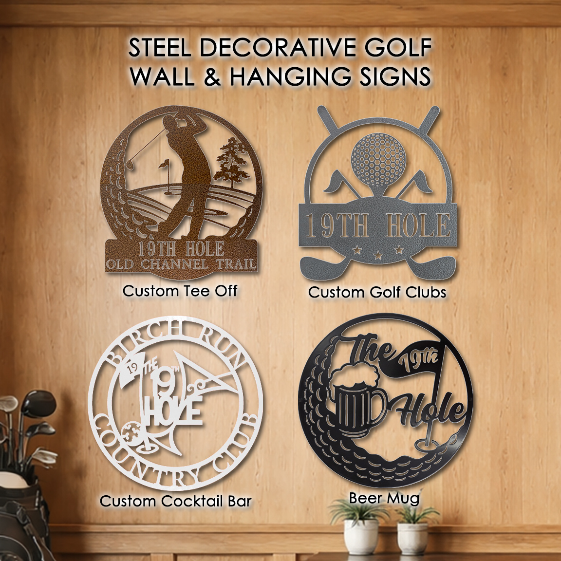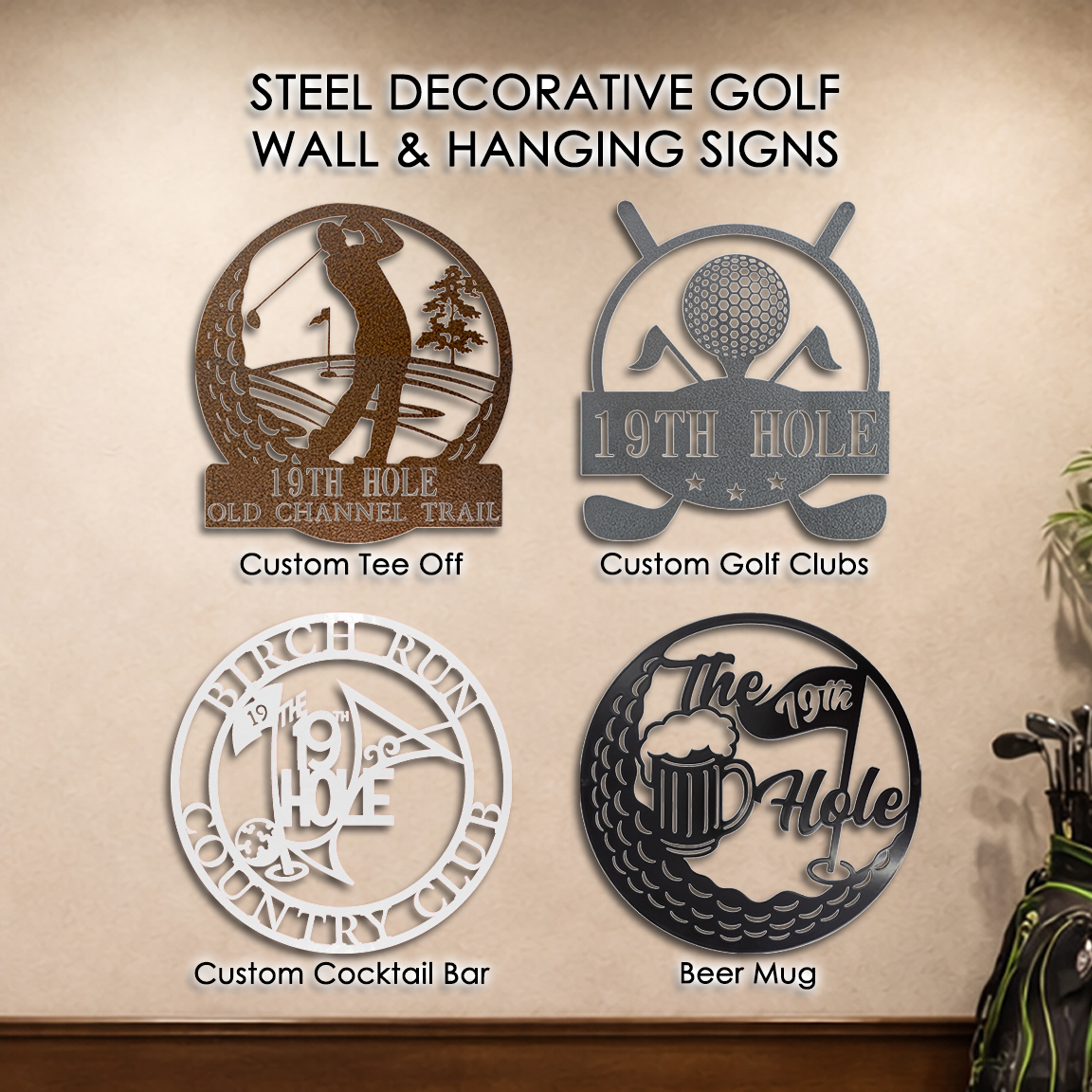 Custom Steel Decorative Golf Wall & Hanging Plaque Signs (4 Styles & 14 Colors)