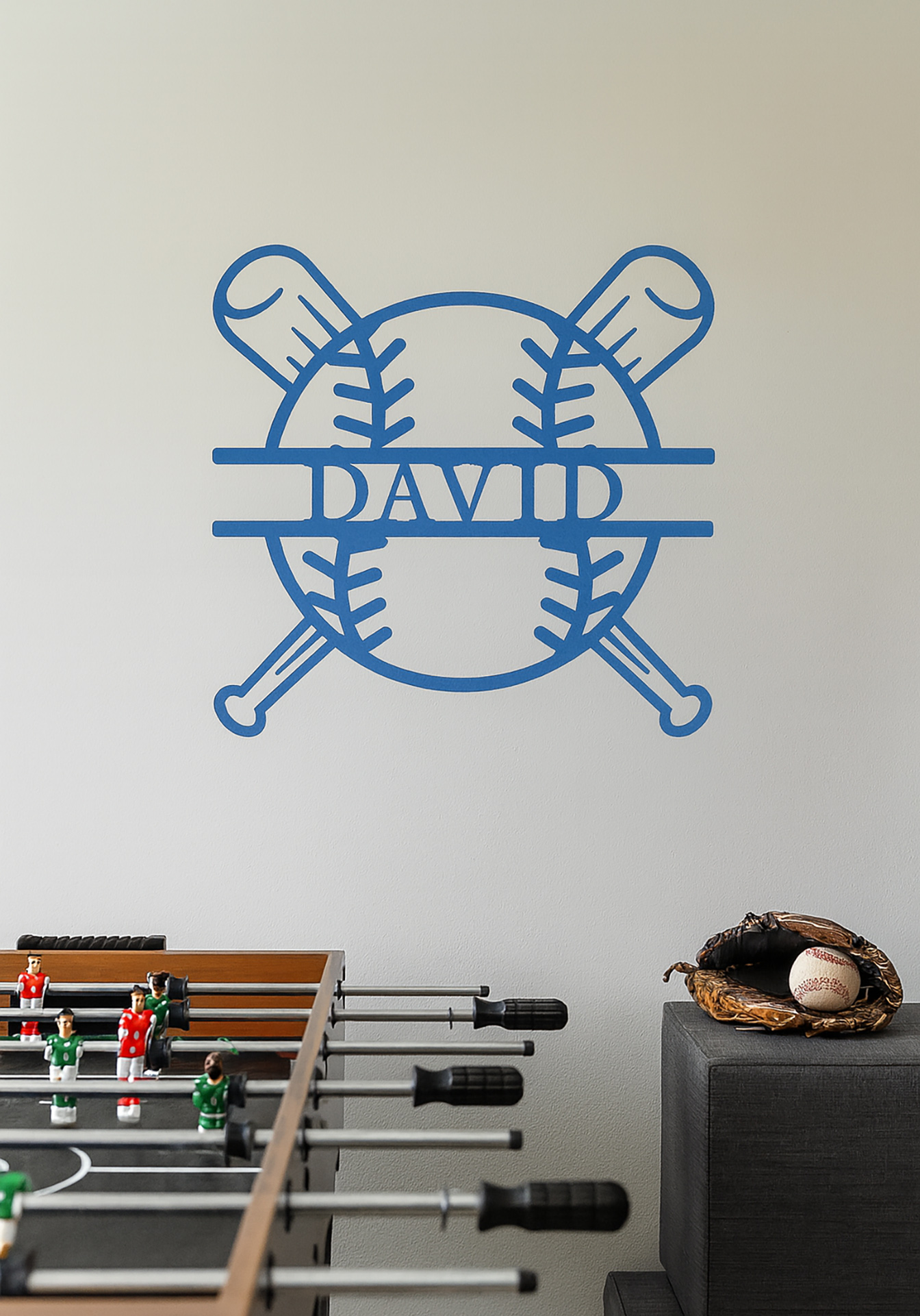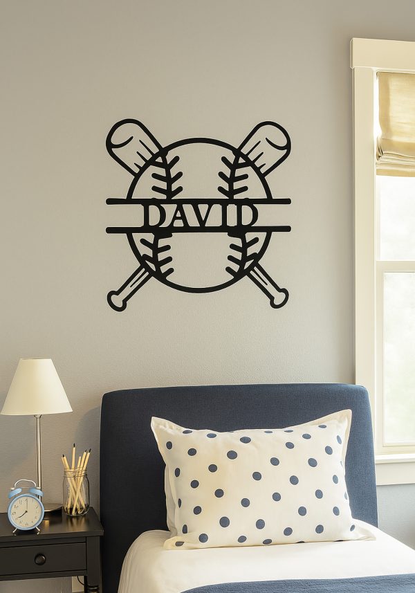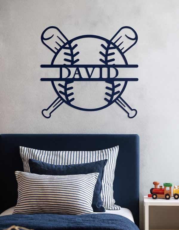 Custom Steel Kids Baseball One-Line Name Wall Sign (5 Sizes & 16 Colors)