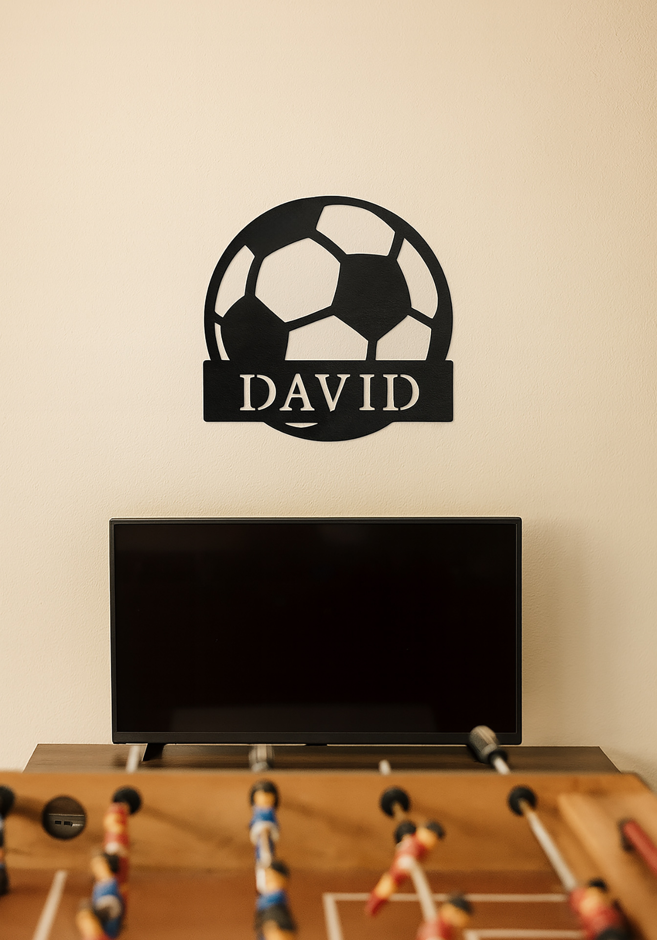 Custom Steel Kids Soccer One-Line Name Wall Sign (5 Sizes & 16 Colors)