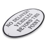 Oval No Delivery Vehicles Beyond This Point Statement Plaque Sign (Mount, Size & Color Options)